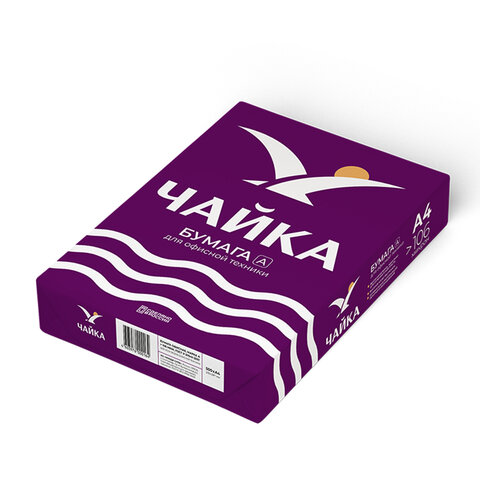 Бумага офисная А4, 80 г/м2, 500 л., марка А, ЧАЙКА, Россия, 162% (CIE)