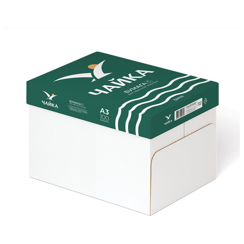 Бумага офисная БОЛЬШОГО ФОРМАТА (297х420), А3, 80 г/м2, 500 л., марка С, ЧАЙКА, Россия, 143% (CIE)