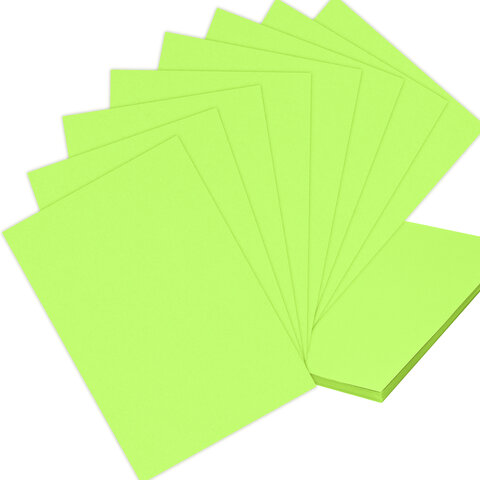 Упакована в пачку из 100 листов формата А4. В упаковке бумага неонового тона зеленого цвета. Листы бумаги плотностью 75 г/м2 подходят для офисной техники.