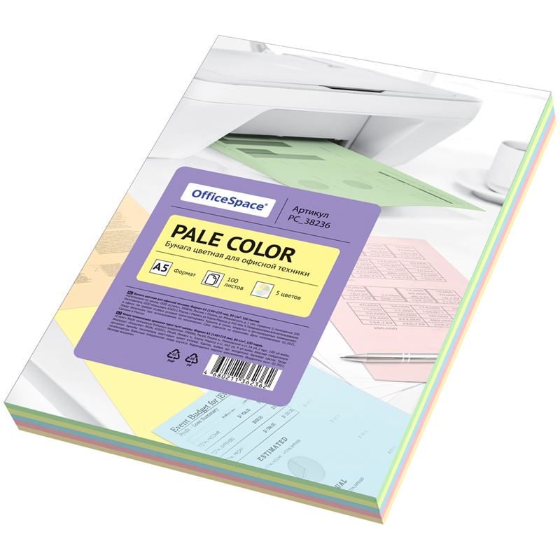 Бумага цветная OfficeSpace "Pale Color", A5, 80 г/м², 100л., (5 цветов)