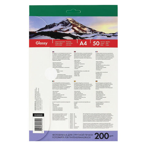Фотобумага А4, 200 г/м2, 50 листов, односторонняя, глянцевая, LOMOND, 0102020