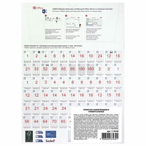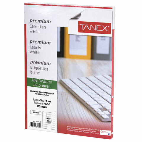 Этикетка самоклеящаяся 70х37,1 мм, 24 этикетки, белая, 70 г/м2, 100 листов, TANEX, 114548, TW-2037