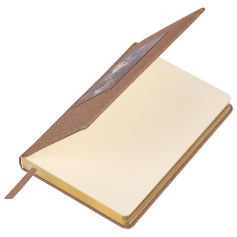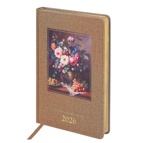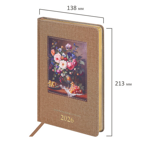 Ежедневник датированный 2026 А5 138х213мм BRAUBERG ArtGallery, под кожу, нашивка, бежевый, 117404