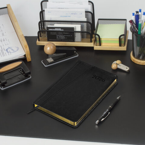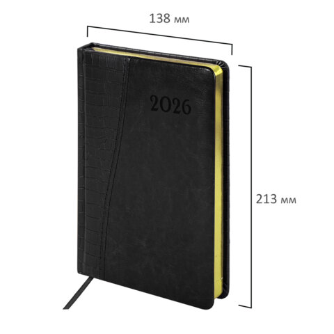 Ежедневник датированный 2026 А5 138x213мм BRAUBERG Cayman, под кожу, черный, 117047