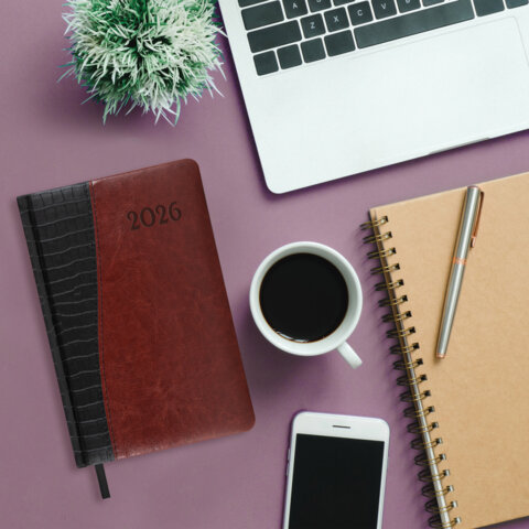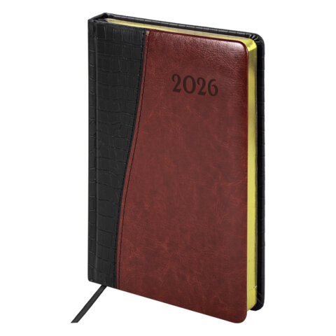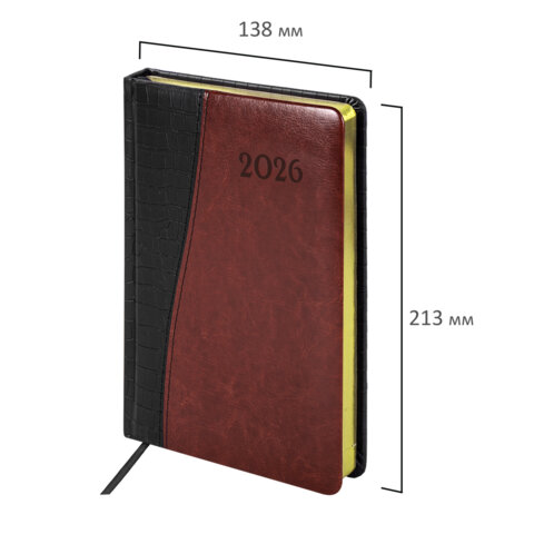 Ежедневник датированный 2026 А5 138x213мм BRAUBERG Cayman, под кожу, черный/коричневый, 117045