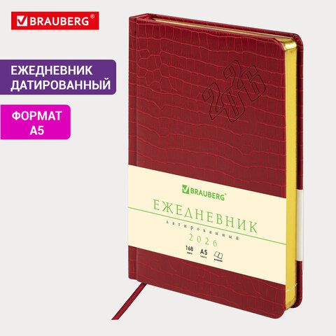 Ежедневник датированный 2026 А5 138x213мм BRAUBERG Comodo, под кожу, красный, 117048