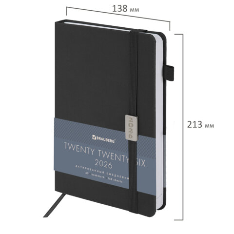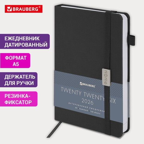Ежедневник датированный 2026 А5 138x213мм BRAUBERG Control, под кожу, держатель для ручки, черный, 1