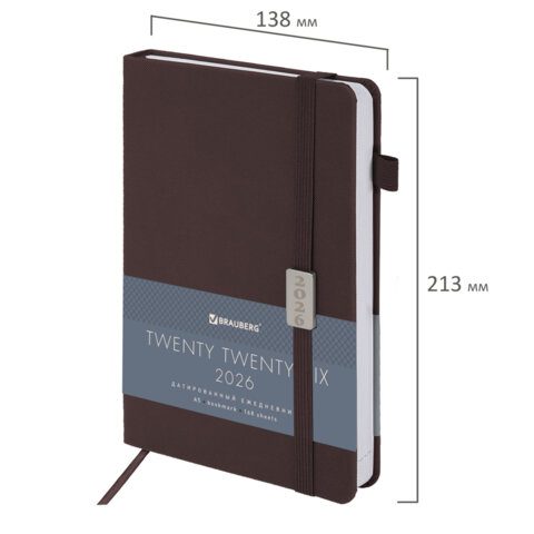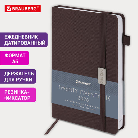 Ежедневник датированный 2026 А5 138x213мм BRAUBERG Control, под кожу, держатель для ручки, коричневы