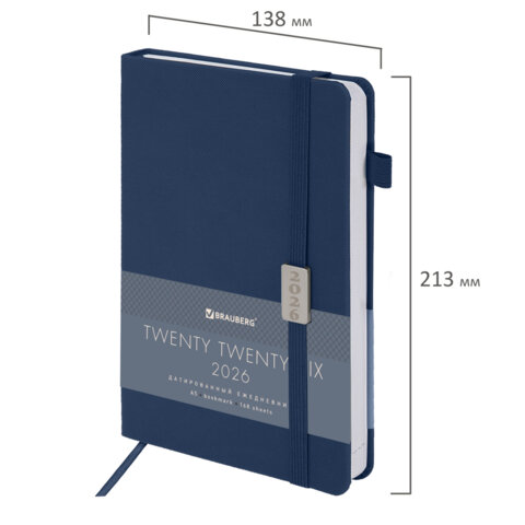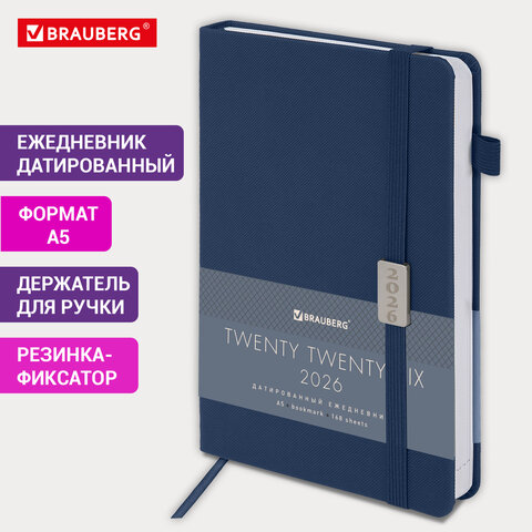 Ежедневник датированный 2026 А5 138x213мм BRAUBERG Control, под кожу, держатель для ручки, синий, 11