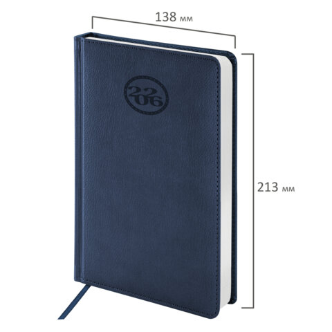 Ежедневник датированный 2026 А5 138x213мм BRAUBERG Favorite, под кожу, темно-синий, 117036