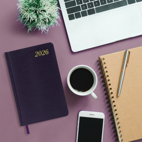 Ежедневник датированный 2026 А5 138x213мм BRAUBERG Iguana, под кожу, темно-фиолетовый, 117059