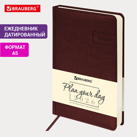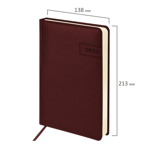 Ежедневник датированный 2026 А5 138x213мм BRAUBERG Imperial, под кожу, коричневый, 117061