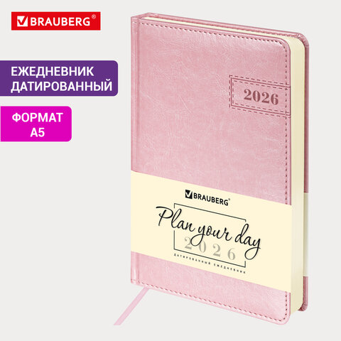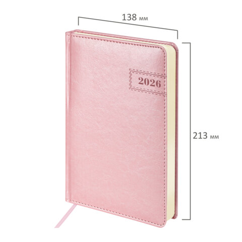 Ежедневник датированный 2026 А5 138x213мм BRAUBERG Imperial, под кожу, розовый, 117065