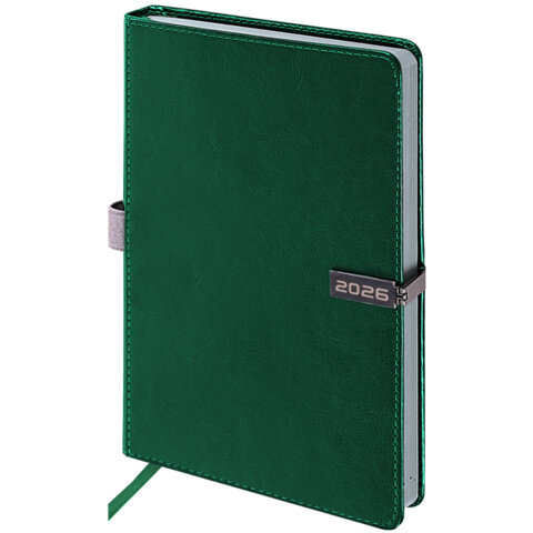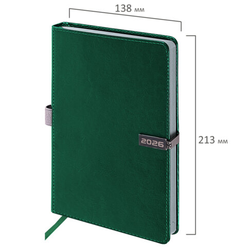 Ежедневник датированный 2026 А5 138x213мм BRAUBERG Inspiration, под кожу, цветной срез, темно-зелен,