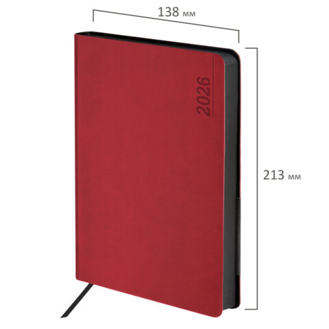 Ежедневник датированный 2026 А5 138x213мм BRAUBERG Metropolis Mix, под кожу гибкий, красный, 117442