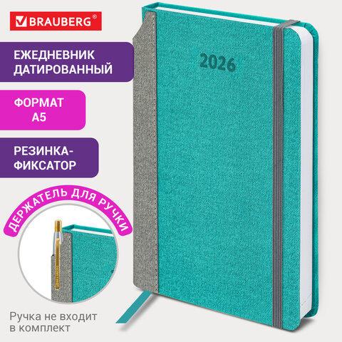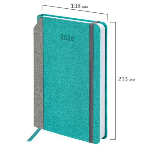 Ежедневник датированный 2026 А5 138x213мм BRAUBERG Mosaic, под кожу, держатель для ручки, бирюза, 11
