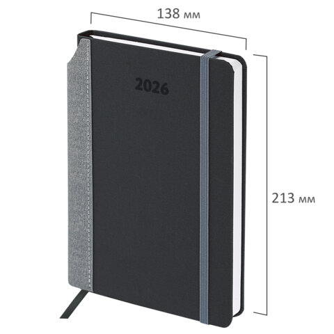 Ежедневник датированный 2026 А5 138x213мм BRAUBERG Mosaic, под кожу, карман для ручки, черный, 11711