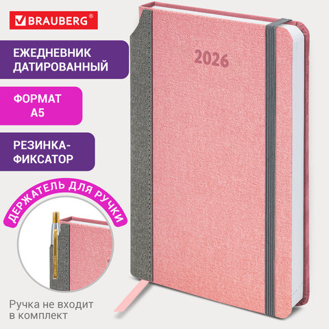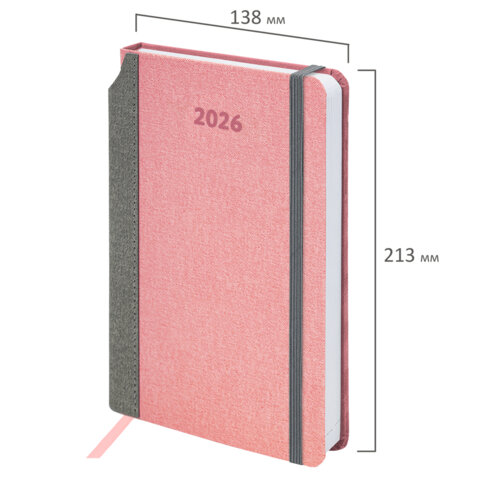 Ежедневник датированный 2026 А5 138x213мм BRAUBERG Mosaic, под кожу, карман для ручки, розовый, 1171