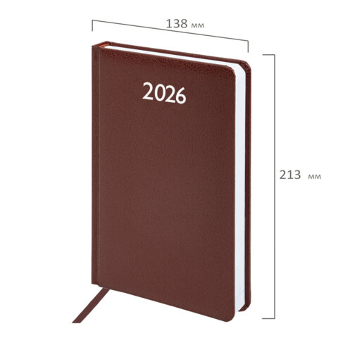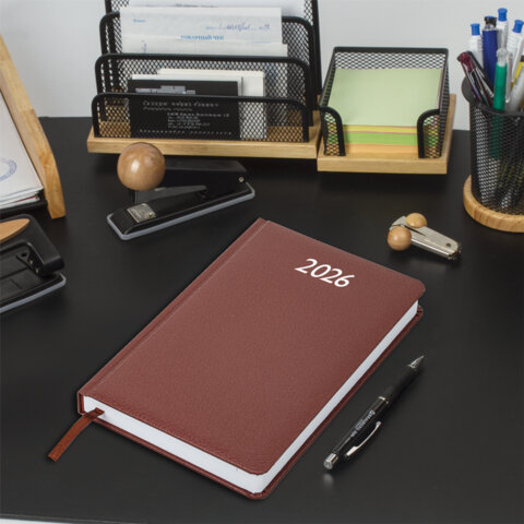 Ежедневник датированный 2026 А5 138x213мм BRAUBERG Profile, балакрон, коричневый, 117072