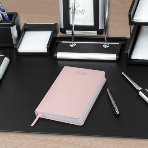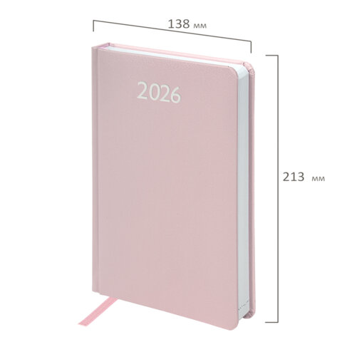 Ежедневник датированный 2026 А5 138x213мм BRAUBERG Profile, балакрон, светло-розовый, 117075