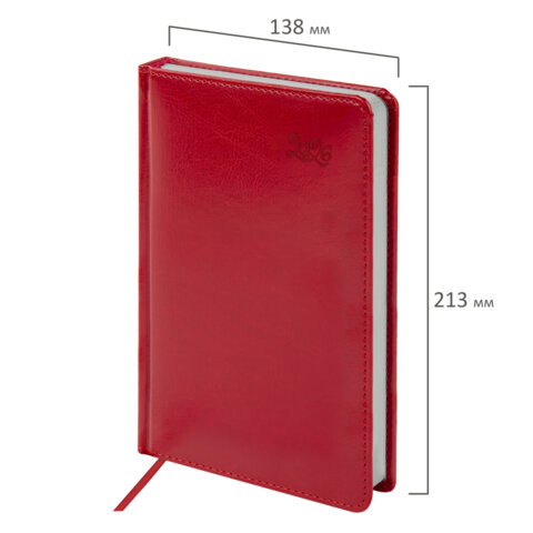 Ежедневник датированный 2026 А5 138x213мм BRAUBERG Rainbow, под кожу, красный, 117077