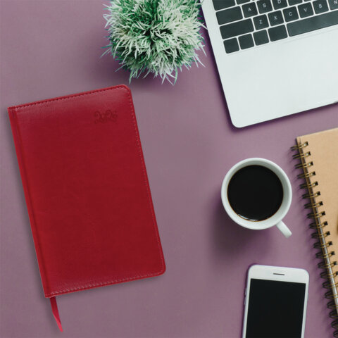 Внутренний блок включает 168 листов белой бумаги плотностью 70 г/м2. Каждая страничка имеет перфорированный угол. Благодаря стандартному формату А5 (138х213 мм) ежедневник удобно использовать как в офисе, так и на выездных деловых встречах.