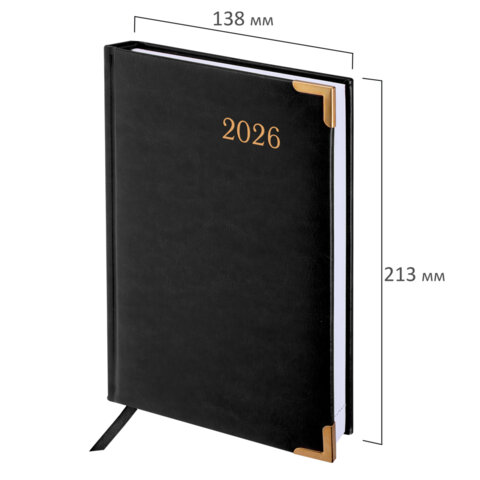 Ежедневник датированный 2026 А5 138x213мм BRAUBERG Senator, под кожу, черный, 117094