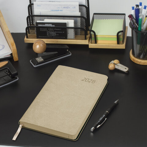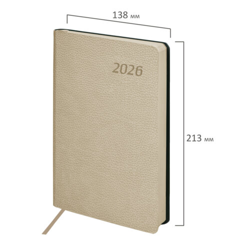 Ежедневник датированный 2026 А5 138x213мм BRAUBERG Stylish, под кожу гибкий, бежевый, 117104