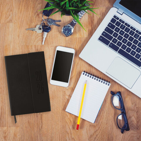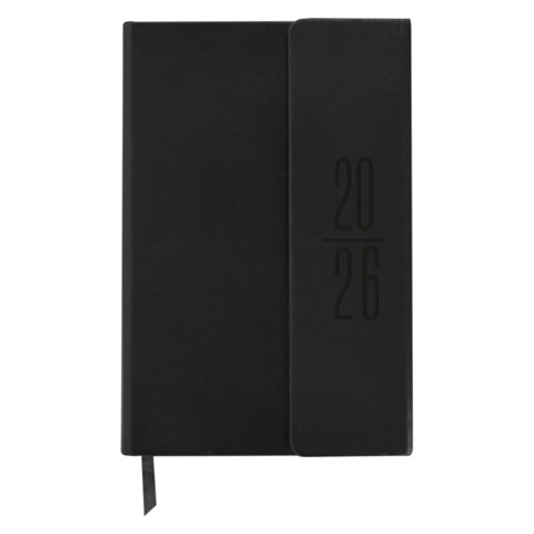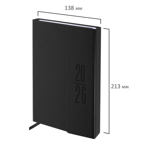 Ежедневник датированный 2026 А5 138x213мм BRAUBERG Towny, под кожу, клапан, черный, 117039