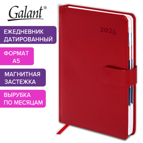Ежедневник датированный 2026 А5 148х218мм GALANT Ritter, под кожу, красный, 117489