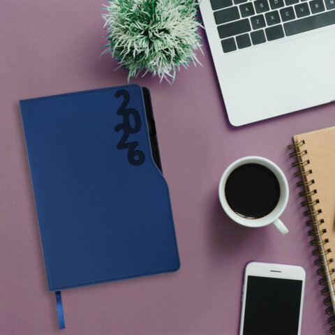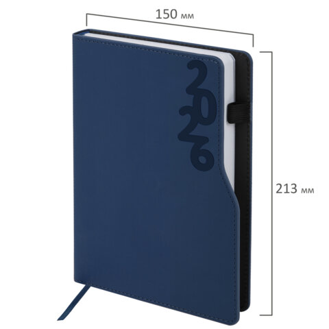 Ежедневник датированный 2026 А5 150x213мм BRAUBERG Up, под кожу софт-тач, держатель для ручки, синий