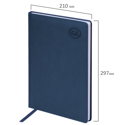 Ежедневник датированный 2026 БОЛЬШОЙ ФОРМАТ 210х297мм А4, BRAUBERG Favorite, под кожу, синий, 117241