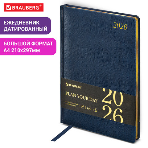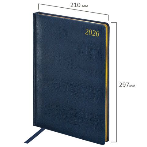 Ежедневник датированный 2026 БОЛЬШОЙ ФОРМАТ 210х297мм А4, BRAUBERG Iguana, под кожу, синий, 117245