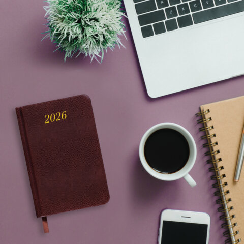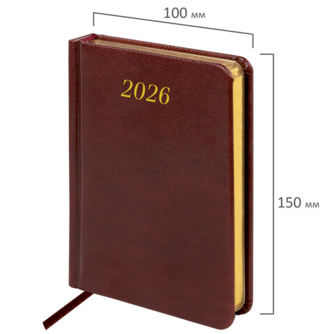 Ежедневник датированный 2026 МАЛЫЙ ФОРМАТ 100х150мм А6, BRAUBERG Iguana, под кожу, коричневый, 11725