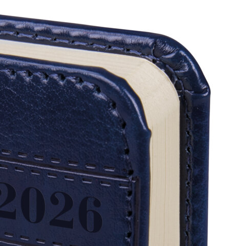 Ежедневник датированный 2026 МАЛЫЙ ФОРМАТ 100х150мм А6, BRAUBERG Imperial, под кожу, синий, 117255