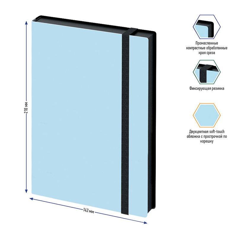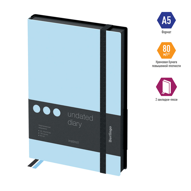 Ежедневник недатир. A5, 136л., кожзам, Berlingo "Instinct", черный/аквамарин, с резинкой