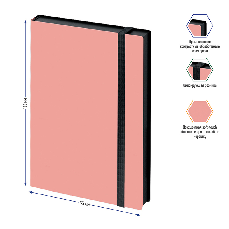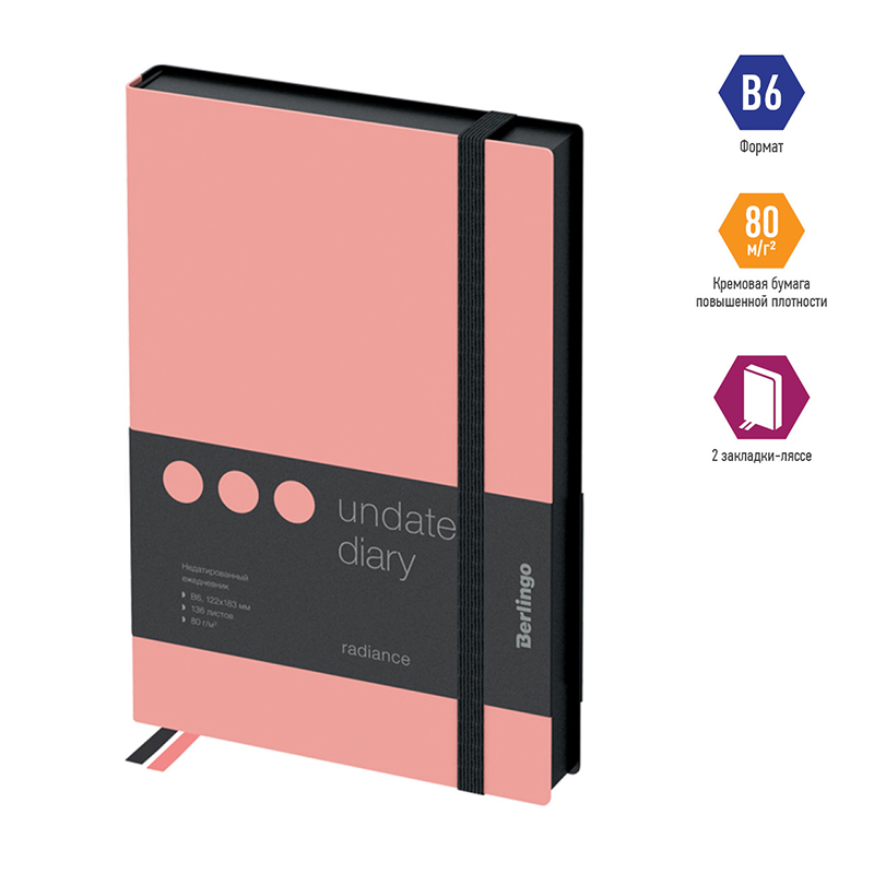 Ежедневник недатир. B6, 136л., кожзам, Berlingo "Instinct", черный/фламинго, с резинкой