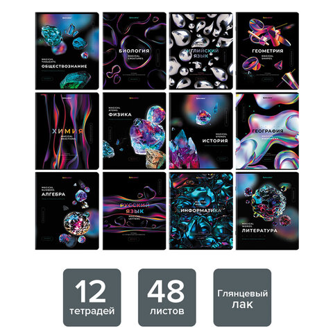 Тетради предметные, КОМПЛЕКТ 12 ПРЕДМЕТОВ, "MAGICAL", 48 л., матовая ламинация, фольга, BRAUBERG, 40