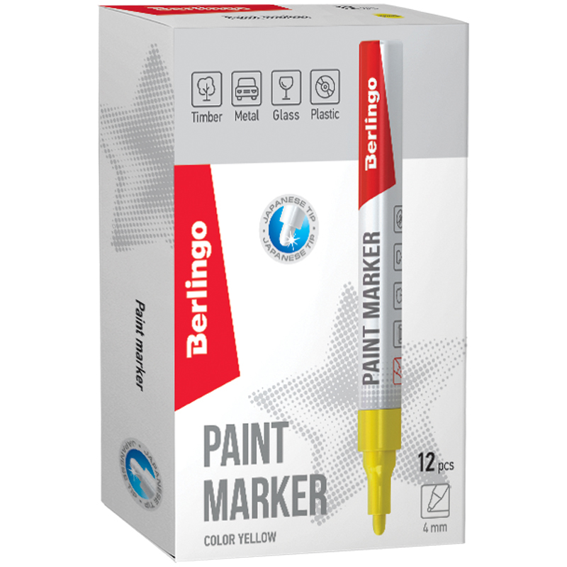 Маркер-краска Berlingo "Uniline PA400", желтая, 2-4мм, нитро-основа