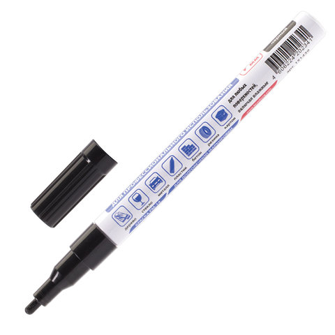 Маркер-краска лаковый (paint marker) 2 мм, ЧЕРНЫЙ, НИТРО-ОСНОВА, алюминиевый корпус, BRAUBERG PROFES