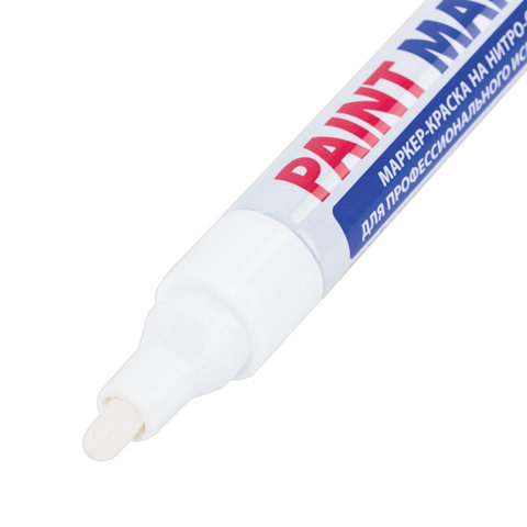 Маркер-краска лаковый (paint marker) 4 мм, БЕЛЫЙ, НИТРО-ОСНОВА, алюминиевый корпус, BRAUBERG PROFESS