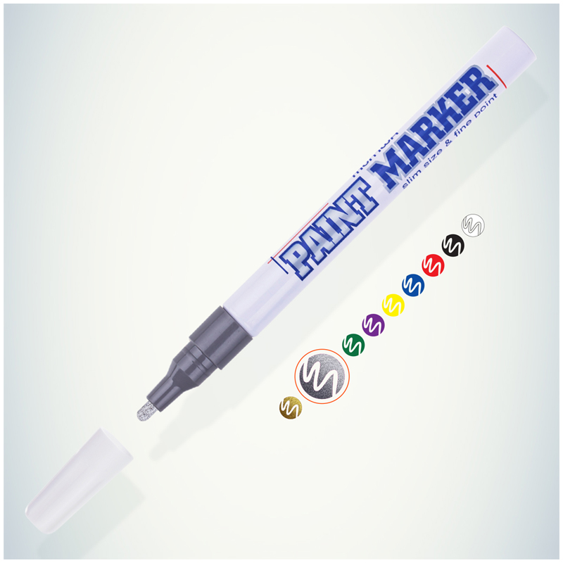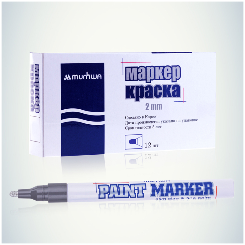 Маркер-краска лаковый (paint marker) MUNHWA "Slim", 2 мм, СЕРЕБРЯНЫЙ, нитро-основа, алюминиевый корп