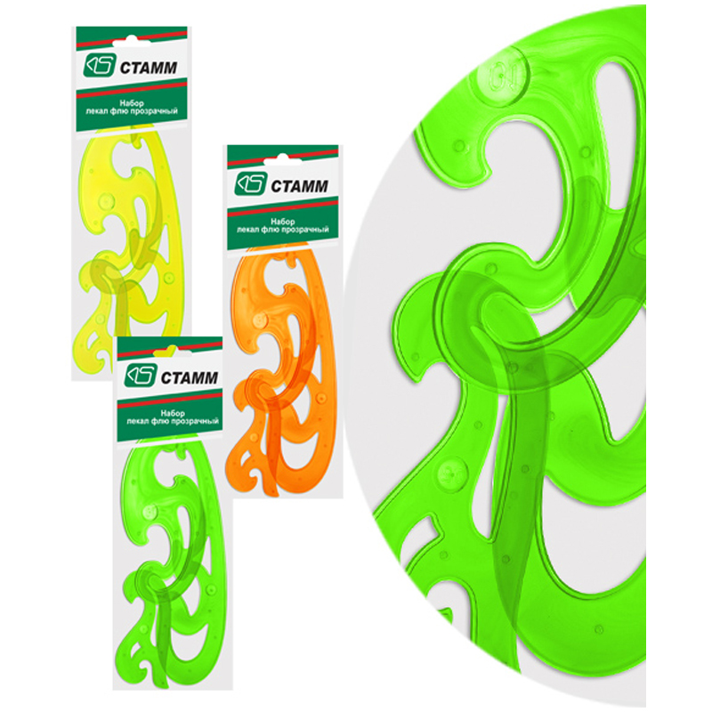 Набор лекал 25,17,12см Стамм, флуоресцентный прозрачный 4цв.