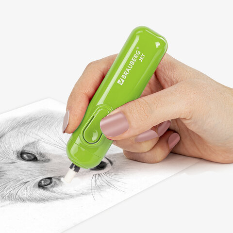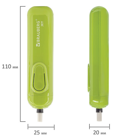 Ластик электрический BRAUBERG JET, питание от 2 батареек ААА, 8 сменных ластиков, салатовый, 229615
