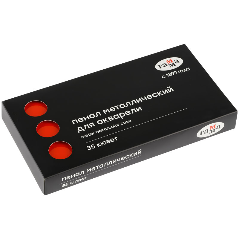Пенал для акварели металлический Гамма, 35 кювет, красный