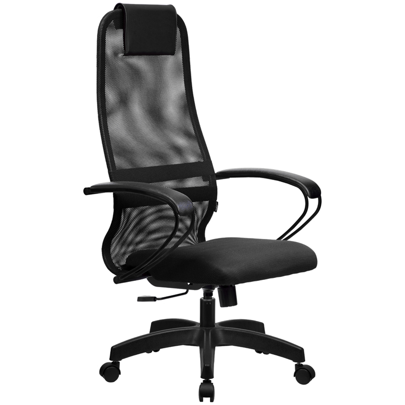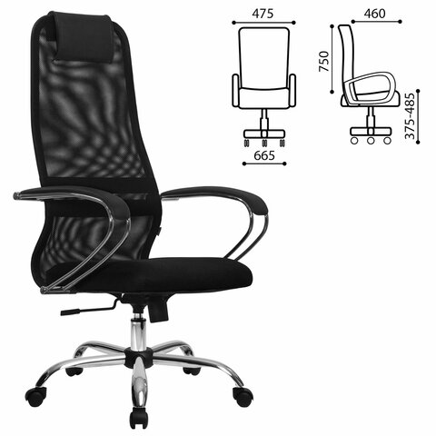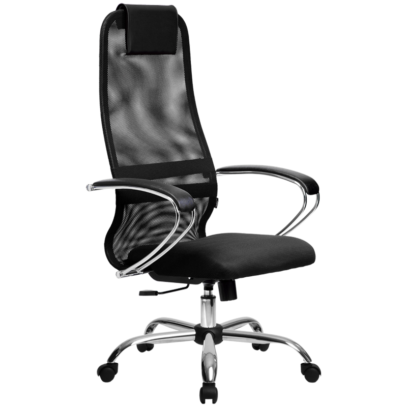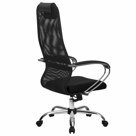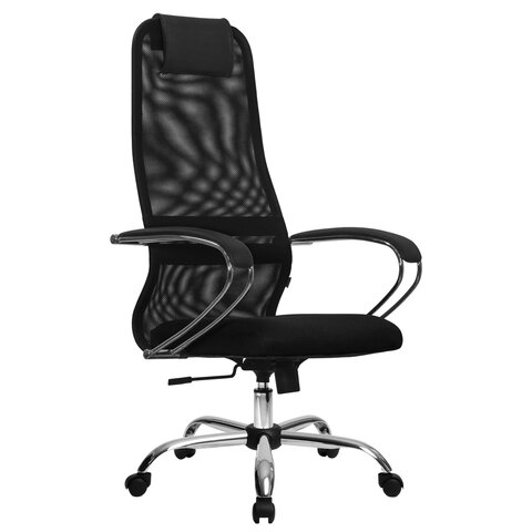 Кресло офисное МЕТТА "SU-B-8" хром, ткань-сетка, сиденье мягкое, черное