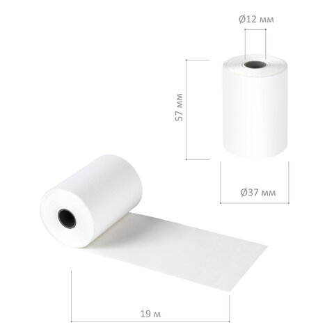 Чековая лента ТЕРМОБУМАГА 57 мм (диаметр 37 мм, длина 19 м, втулка 12 мм), 44 г/м2,