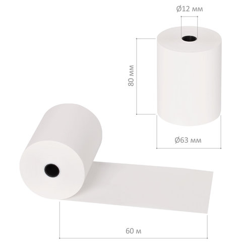 Чековая лента ТЕРМОБУМАГА 80 мм (диаметр 63 мм, длина 60 м, втулка 12 мм) BRAUBERG,