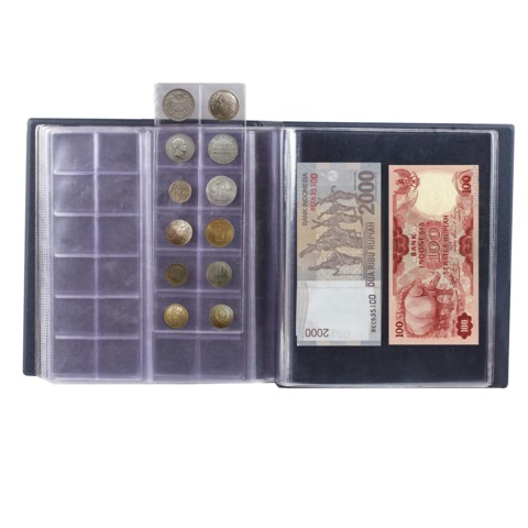 Альбом для монет и купюр на винтах универсальный, 224х224 мм, на 216 монет до D-45 мм, выдвижные кар