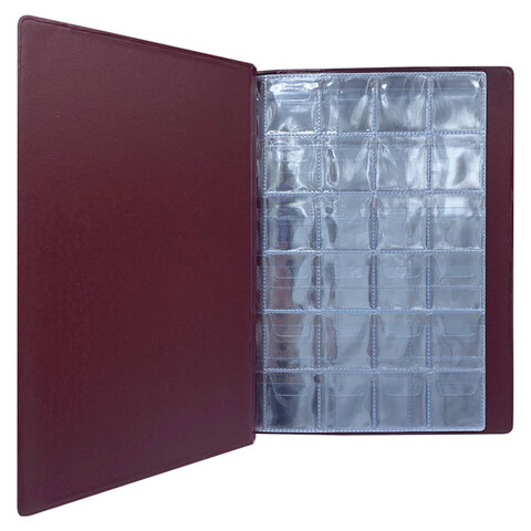 Альбом нумизмата для 138 монет, 125х185 мм, ПВХ, бордовый, STAFF, 238078